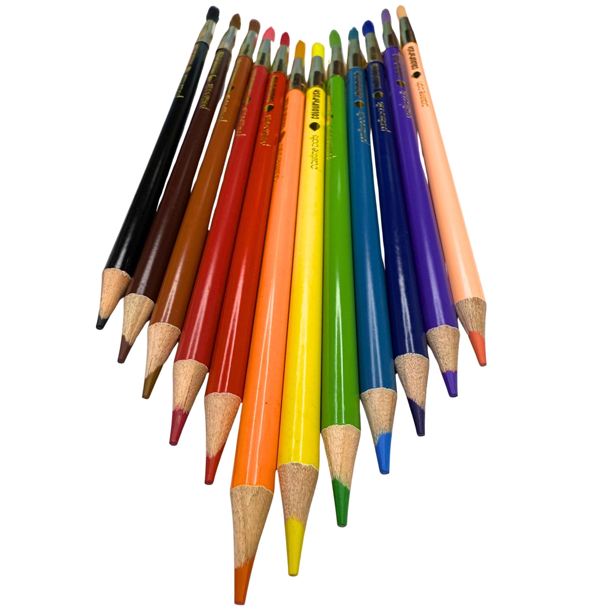 Designed for artists who love versatility and convenience, each pencil features a dual-ended design: one side a richly pigmented watercolour pencil, the other a soft-bristled colourful paintbrush for instant blending on the go.