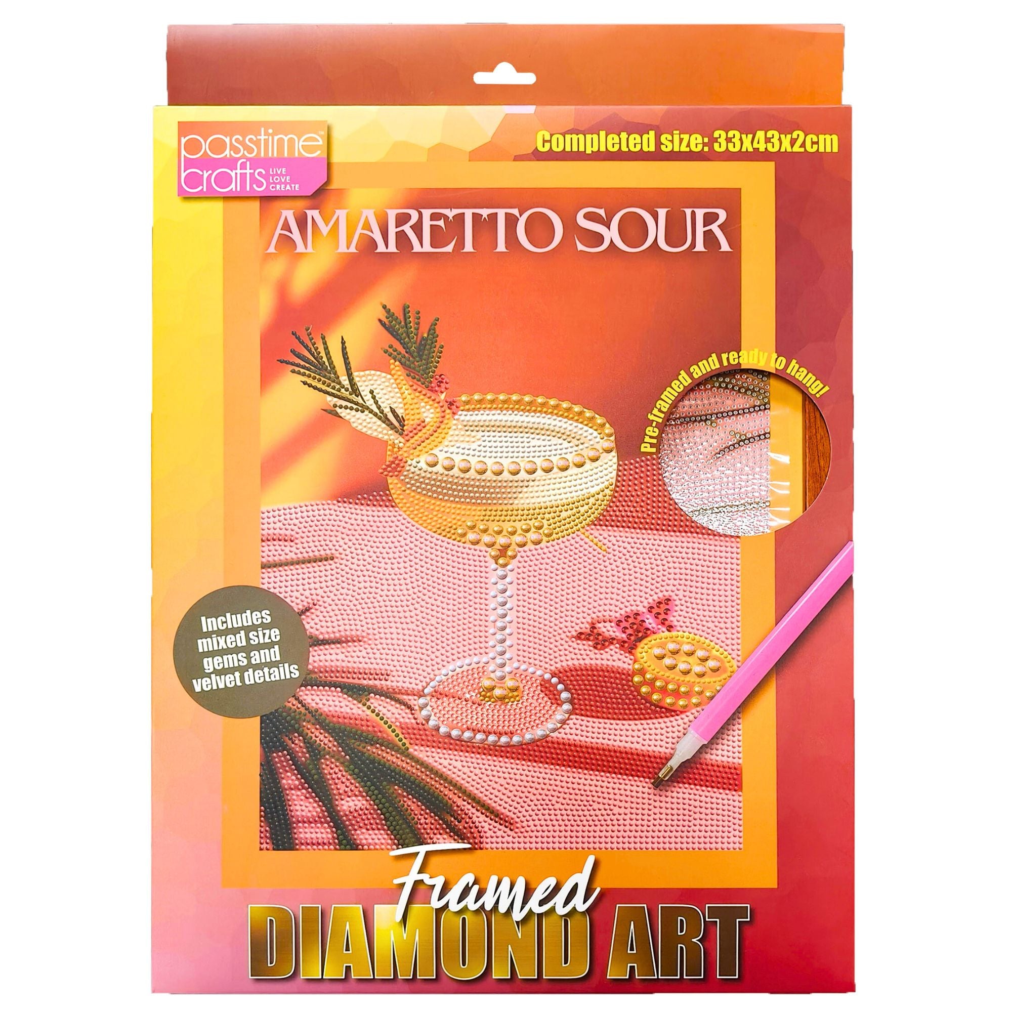 Each piece comes with a pre-mounted coloured frame, so you can create, complete, and hang your glittering masterpiece straight away. With vibrant printed artwork, velvet-textured details, and shimmering resin gems, these designs add a luxe touch to any room - whether you’re crafting for fun, crafting for home decor, or gifting to a fellow cocktail lover.