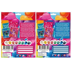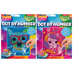 The Dot By Numbers DIY Kit guides young artists through simple numbered patterns using bright paints and easy to hold acrylic dotting tools. Each number matches a paint colour and acrylic dotting tool size, helping children build coordination, focus, and colour recognition as they create their own finished artwork.
