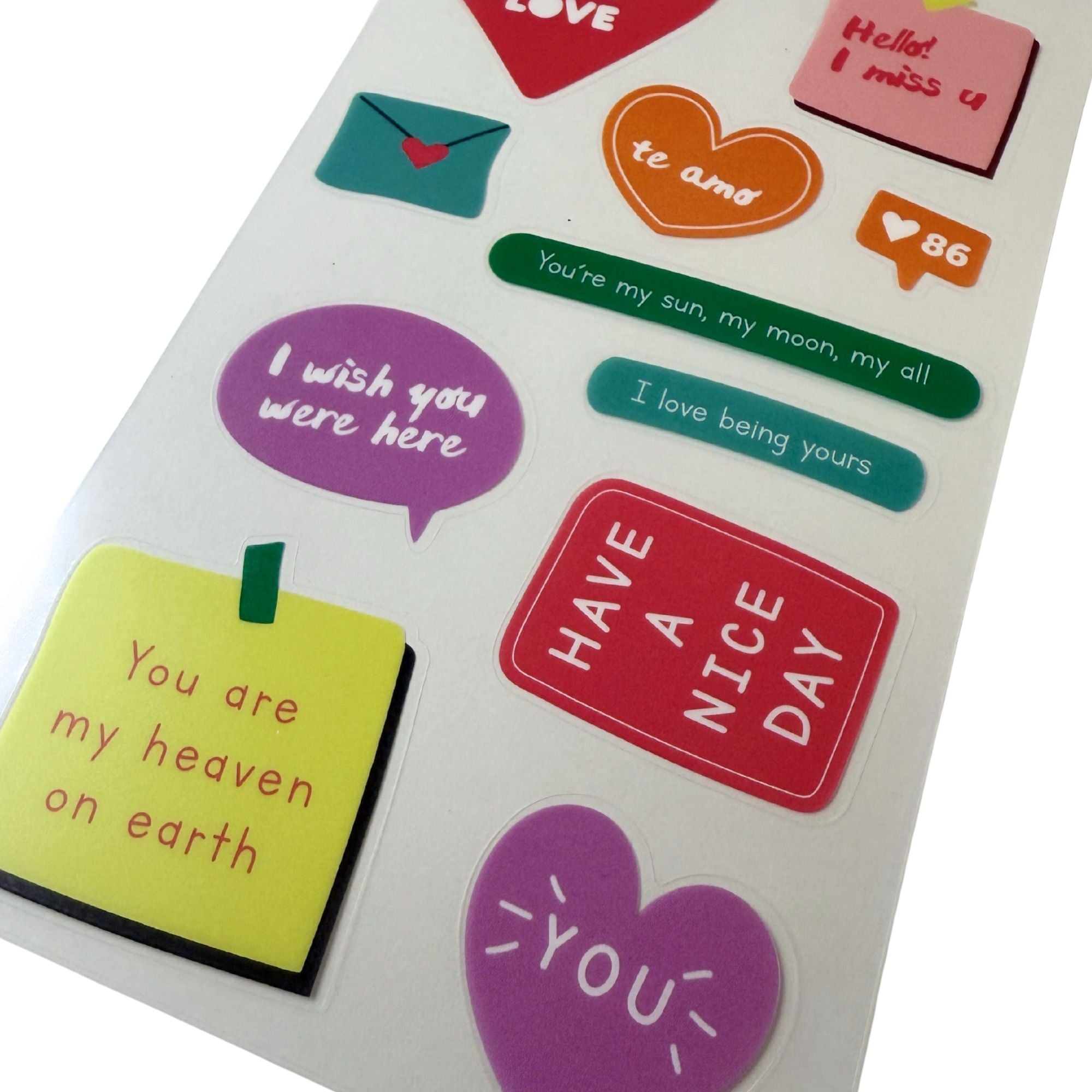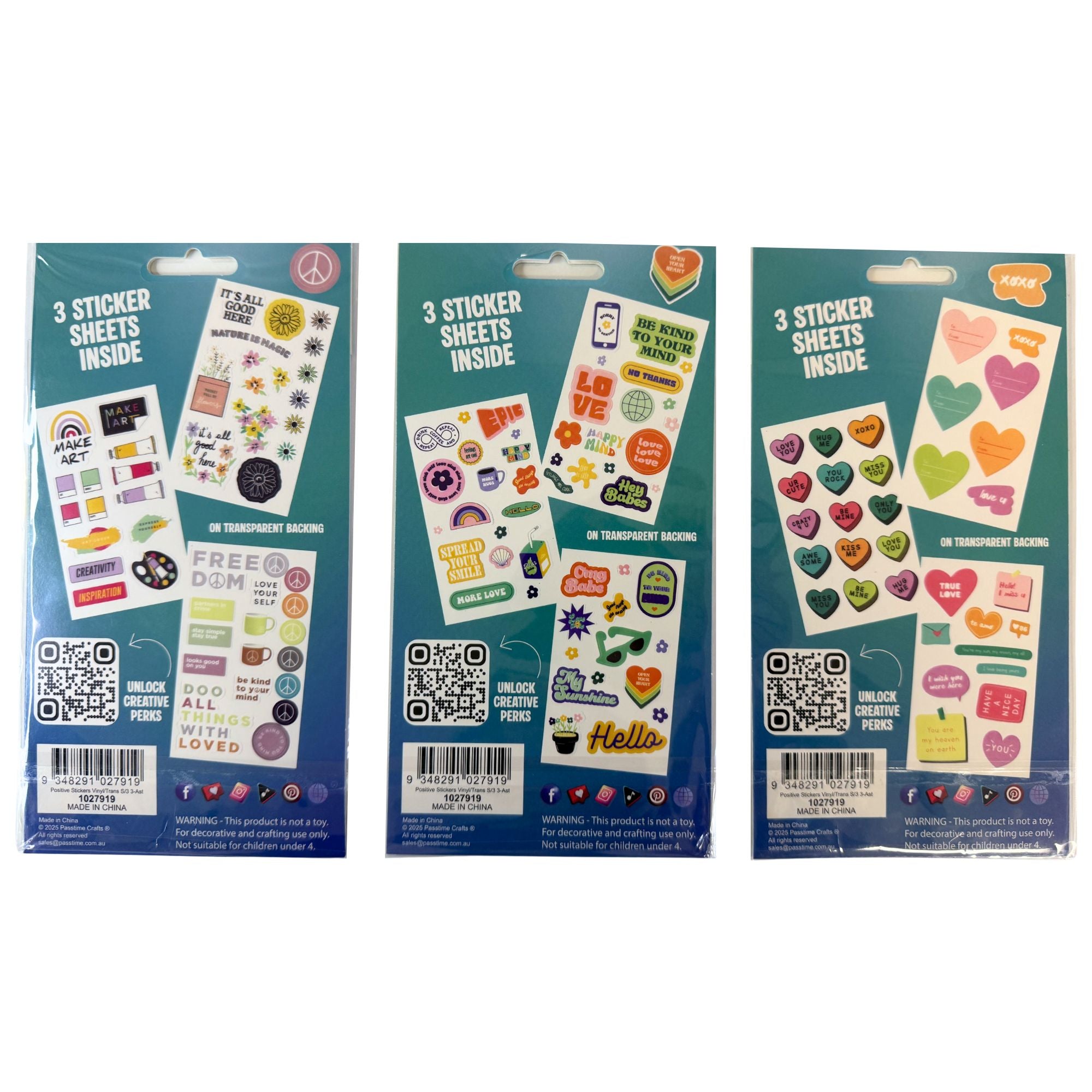 Each sheet features uplifting words and affirmations designed to inspire creativity and kindness wherever you stick them.